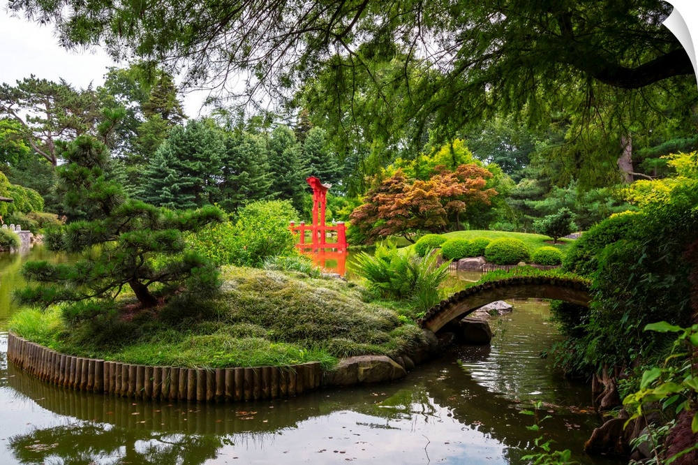 <p>USA, New York City, Brooklyn Botanic Garden, Japanese garden, Torii gate.</p>