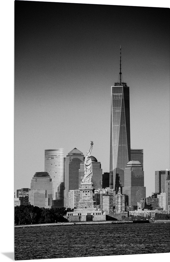 <p>USA, New York City, Lower Manhattan, Lower Manhattan skyline with Freedom Tower and Statue of Liberty.</p>