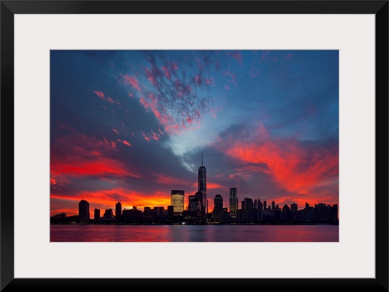 <p>USA, New York City, Manhattan, Lower Manhattan, One World Trade Center, Freedom Tower, Manhattan skyline with the Freedom Tower viewed from New Jersey.</p>