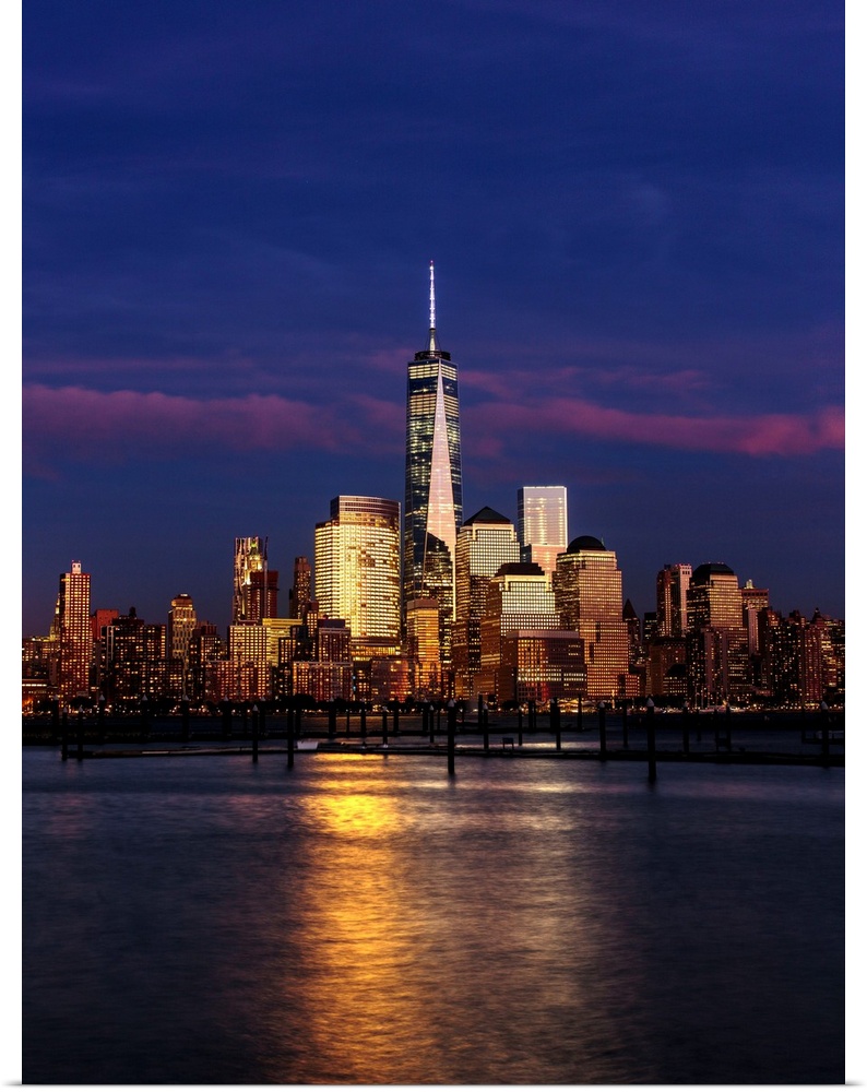 <p>USA, New York City, Manhattan, Lower Manhattan, One World Trade Center, Freedom Tower, Empire State Building from New Jersey.</p>