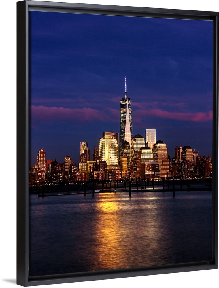 <p>USA, New York City, Manhattan, Lower Manhattan, One World Trade Center, Freedom Tower, Empire State Building from New Jersey.</p>