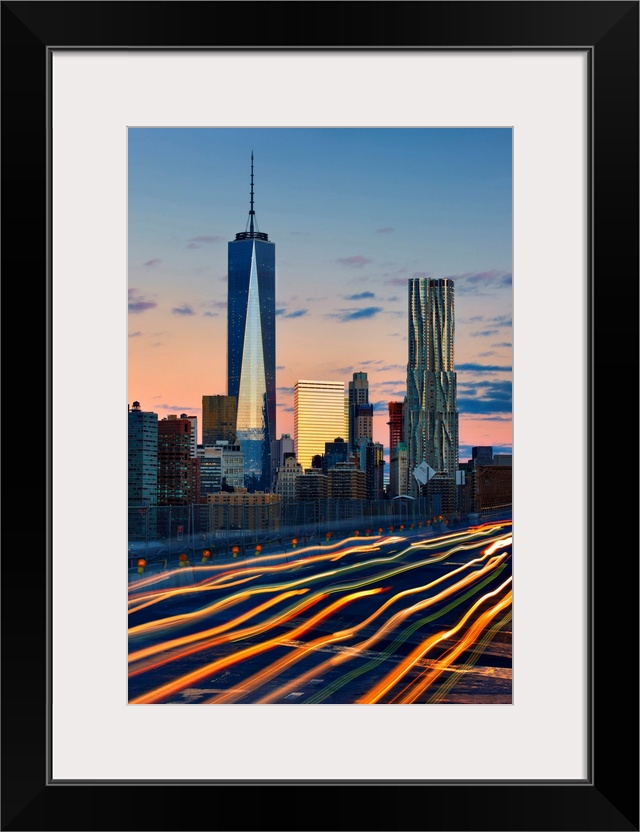 <p>USA, New York City, Manhattan, Lower Manhattan, One World Trade Center, Freedom Tower, Freedom and Beekman towers.</p>