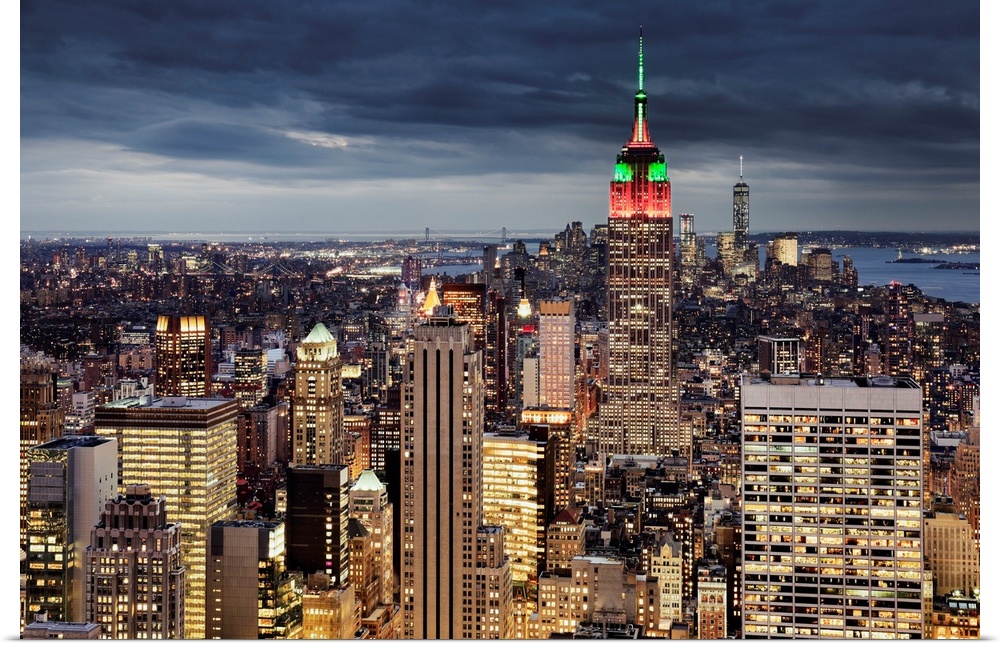<p>USA, New York City, Midtown skyline and Empire State building from the Rockefeller Center Top of the Rock, Freedom Tower in the far ground right.</p>