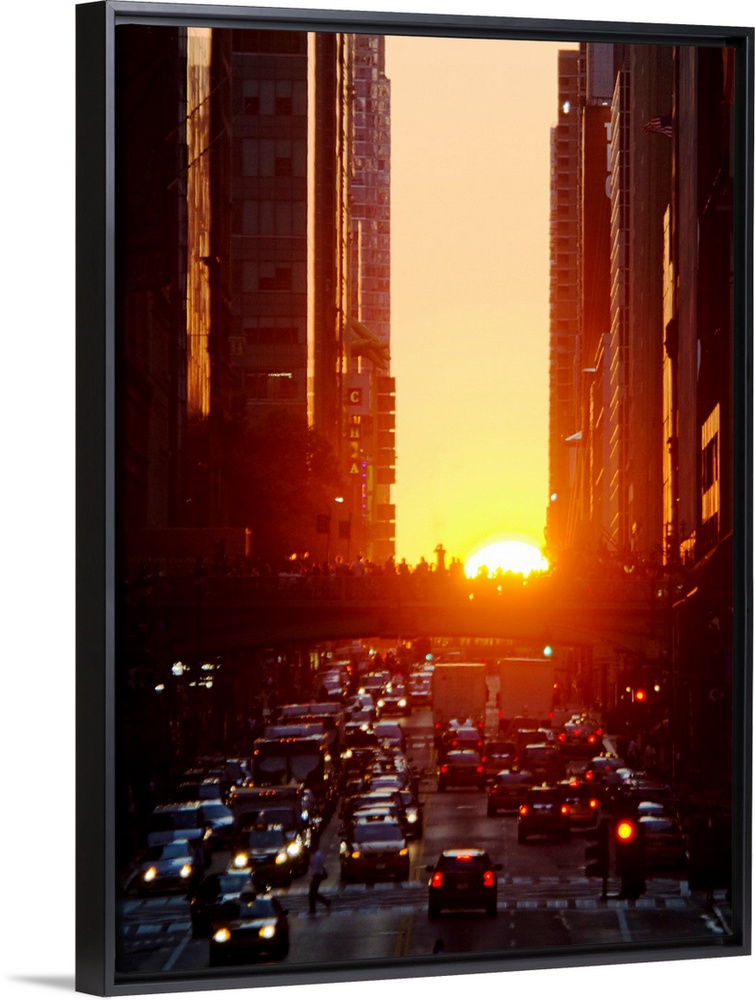 <p>USA, New York, New York City, Sunset illuminating busy street</p>