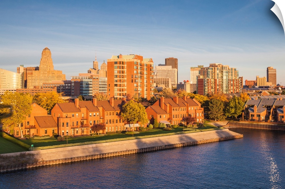 <p>USA, New York, Western New York, Buffalo, harbor front from Lake Erie, sunset.</p>