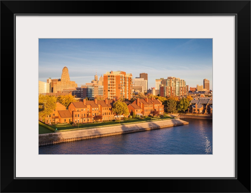 <p>USA, New York, Western New York, Buffalo, harbor front from Lake Erie, sunset.</p>