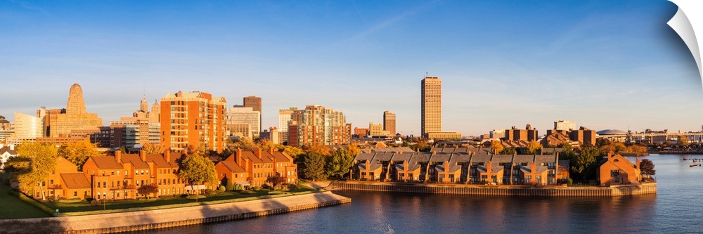 <p>USA, New York, Western New York, Buffalo, harbor front from Lake Erie, sunset.</p>