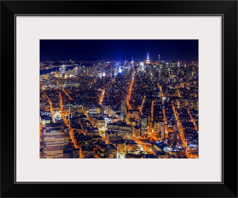 <p>USA, New York City, Midtown, Stunning view from the Freedom Tower observatory deck, one world observatory, towards Empire state building.</p>