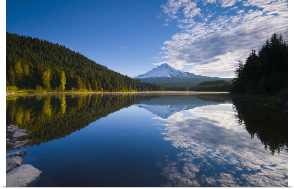 <p>USA, Oregon, Clackamas County, View of Trillium Lake with Mt Hood in background</p>