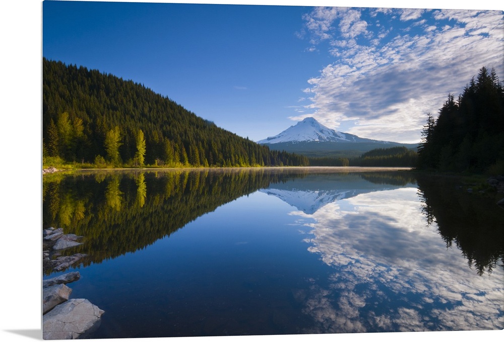 <p>USA, Oregon, Clackamas County, View of Trillium Lake with Mt Hood in background</p>