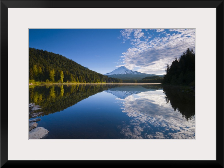 <p>USA, Oregon, Clackamas County, View of Trillium Lake with Mt Hood in background</p>