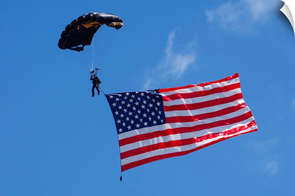 <p>USA, Oregon, Hillsboro, SOCOM paracommandos at Oregon International AIrshow.</p>