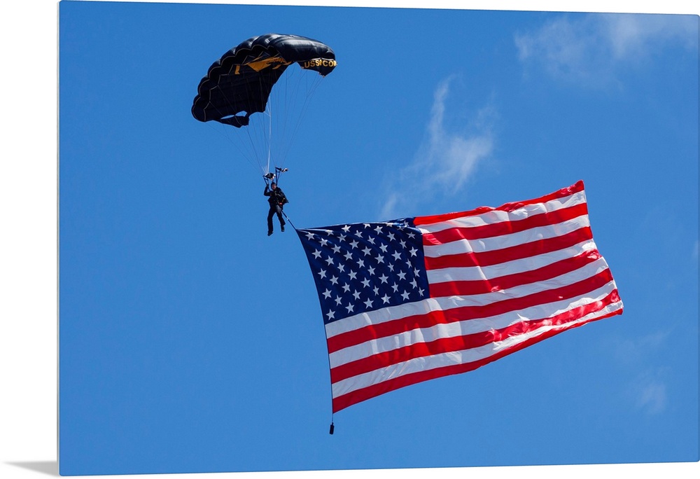 <p>USA, Oregon, Hillsboro, SOCOM paracommandos at Oregon International AIrshow.</p>