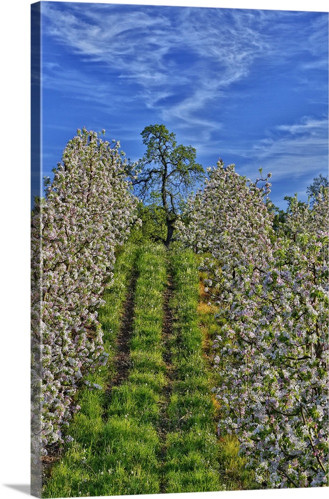 USA, Oregon, Hood River, Apple Orchard In Full Bloom