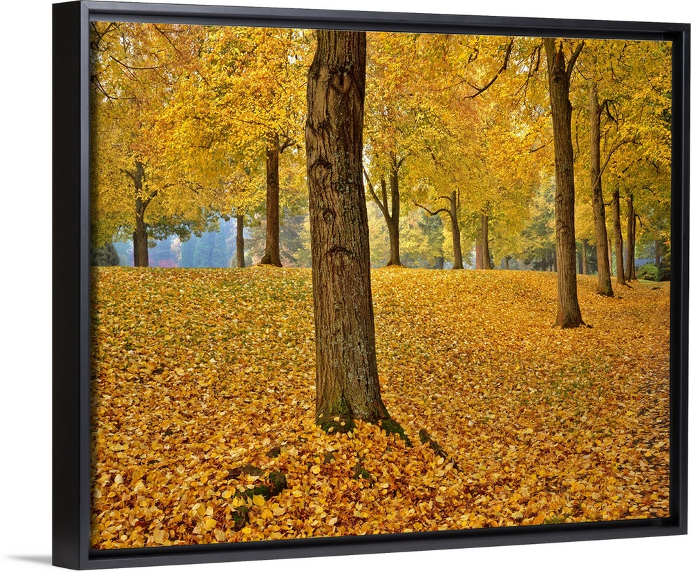 <p>USA, Oregon, Portland. American linden trees in fall colors in Laurelhurst Park.</p>