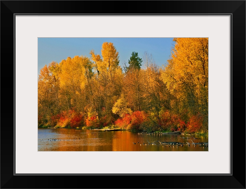 <p>USA, Oregon, Portland. Johnson Lake and waterfowl in autumn.</p>