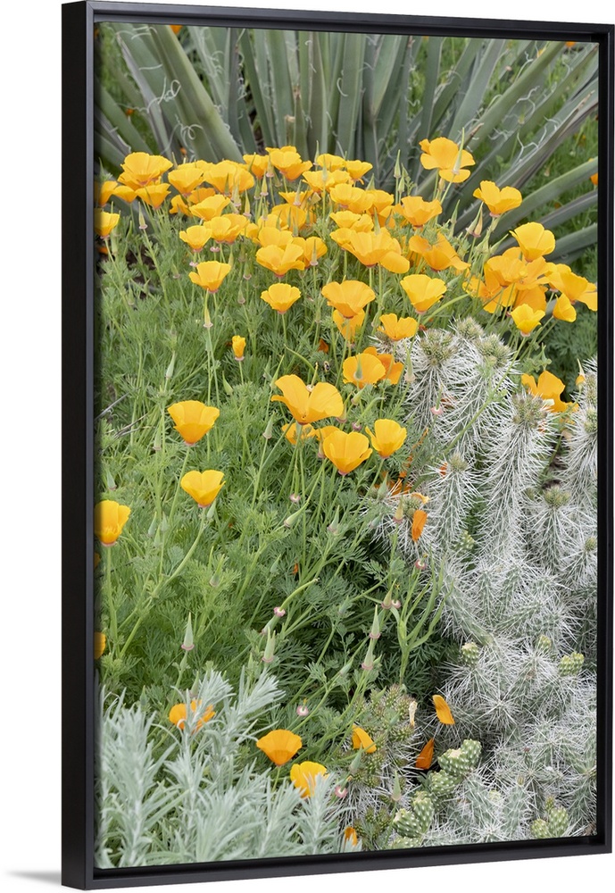 <p>USA, Utah. California poppy and cliffrose.</p>