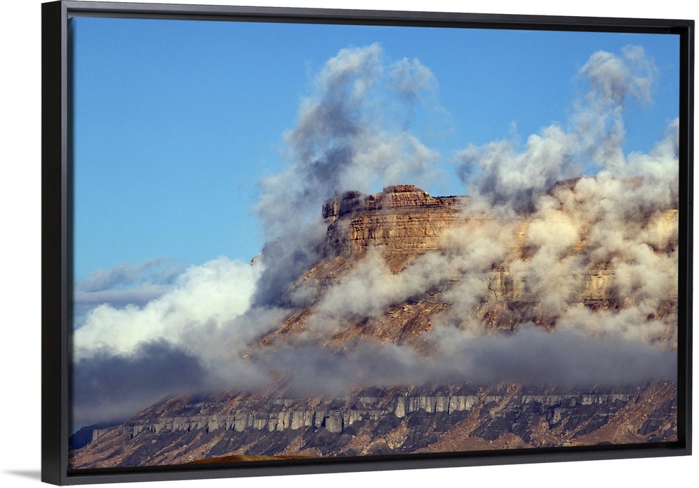<p>USA, Utah. Green River, Cloud and Mist Shrouded Little Elliot Mesa. United States, Utah.</p>