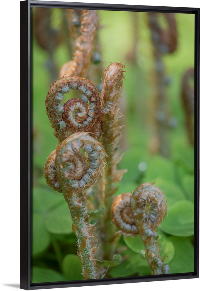 <p>USA, Washington, Bainbridge Island. Sword fern fronds and oxalis in spring.</p>
