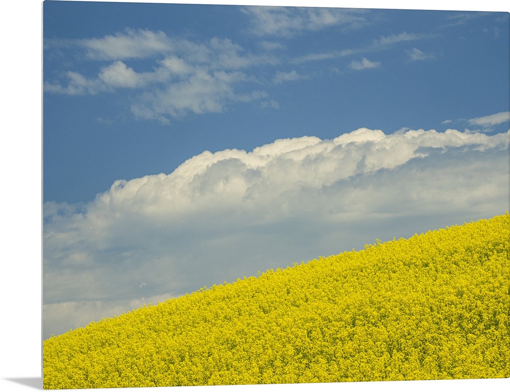 <p>Usa, Washington State, Palouse. Canola fields under blue sky with puffy clouds.</p>