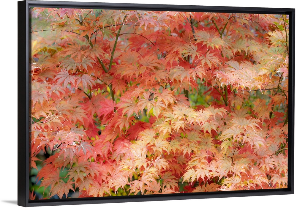 <p>USA, Washington State, Sammamish. Japanese maple trees leaves in orange tones fall time.</p>