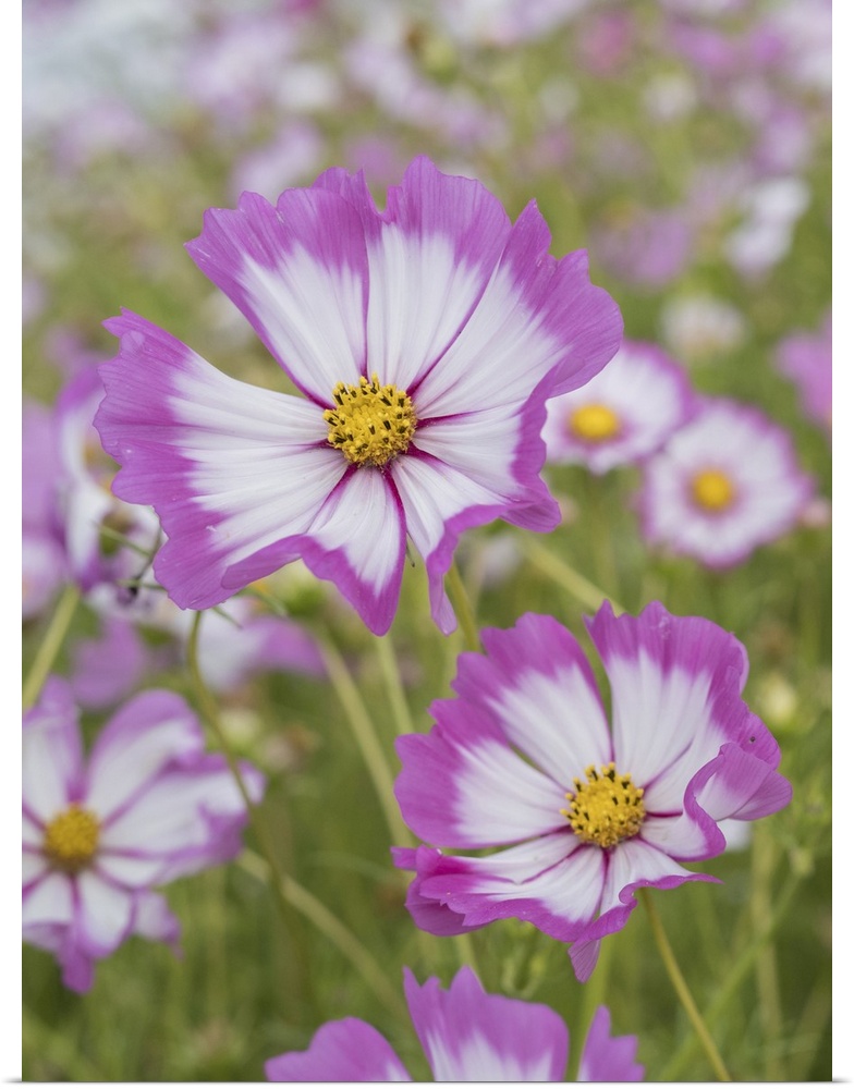 <p>Usa, Washington State. Snoqualmie Valley, pink and white Garden cosmos in field on farm.</p>