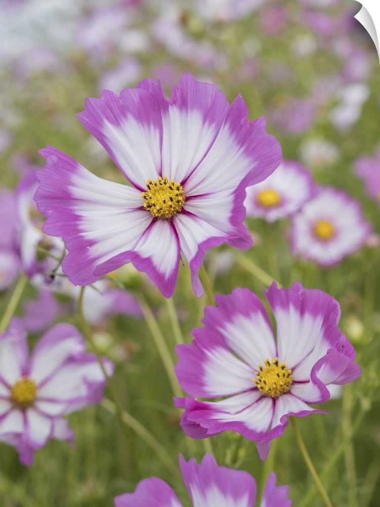 <p>Usa, Washington State. Snoqualmie Valley, pink and white Garden cosmos in field on farm.</p>