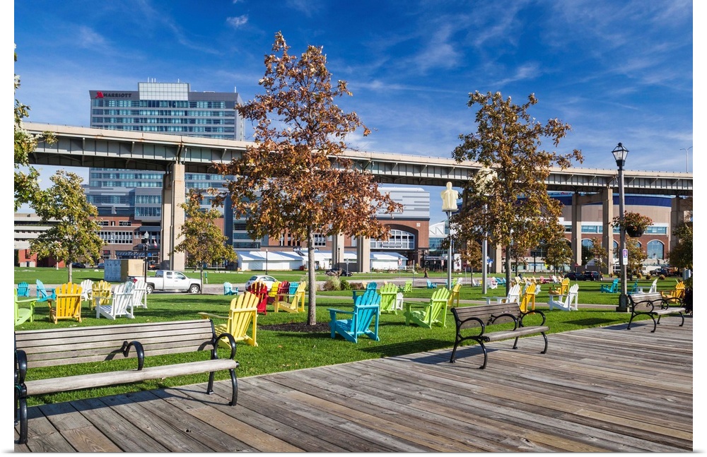 <p>USA, Western New York, Buffalo, Canalside Park, renovated former industrial area.</p>