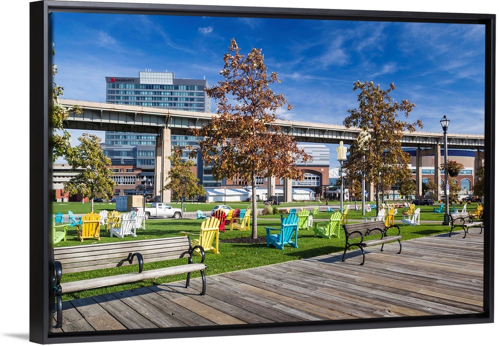<p>USA, Western New York, Buffalo, Canalside Park, renovated former industrial area.</p>