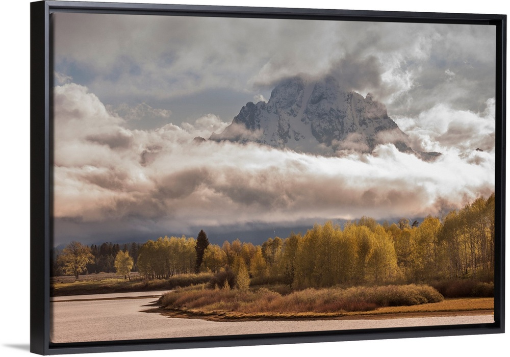 <p>USA, Wyoming, Grand Teton National Park. Rainstorm over Mt. Moran.</p>