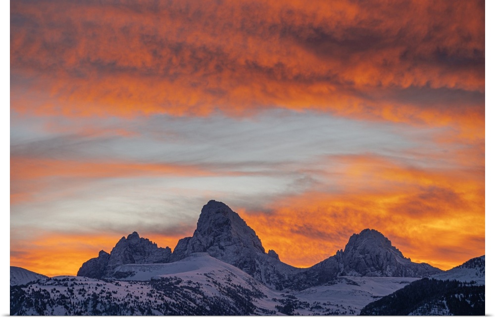 Mountains Skyscapes Clouds Sunrise Orange Wall Art Photography United States Idaho Wyoming Grand Tetons