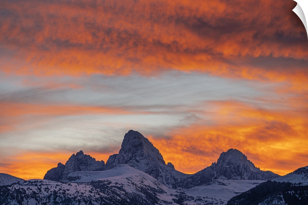 Mountains Skyscapes Clouds Sunrise Orange Wall Art Photography United States Idaho Wyoming Grand Tetons