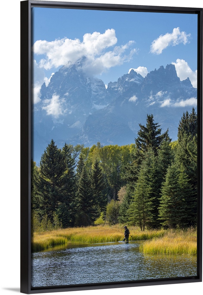 <p>USA, Wyoming, Rockie Mountains, Teton County, Grand Teton National Park, fly fisherman</p>