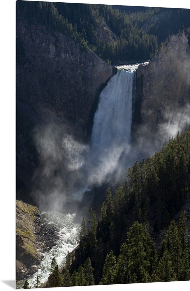 <p>USA, Wyoming, Shadows And Mist At Lower Yellowstone Falls, Yellowstone National Park</p>