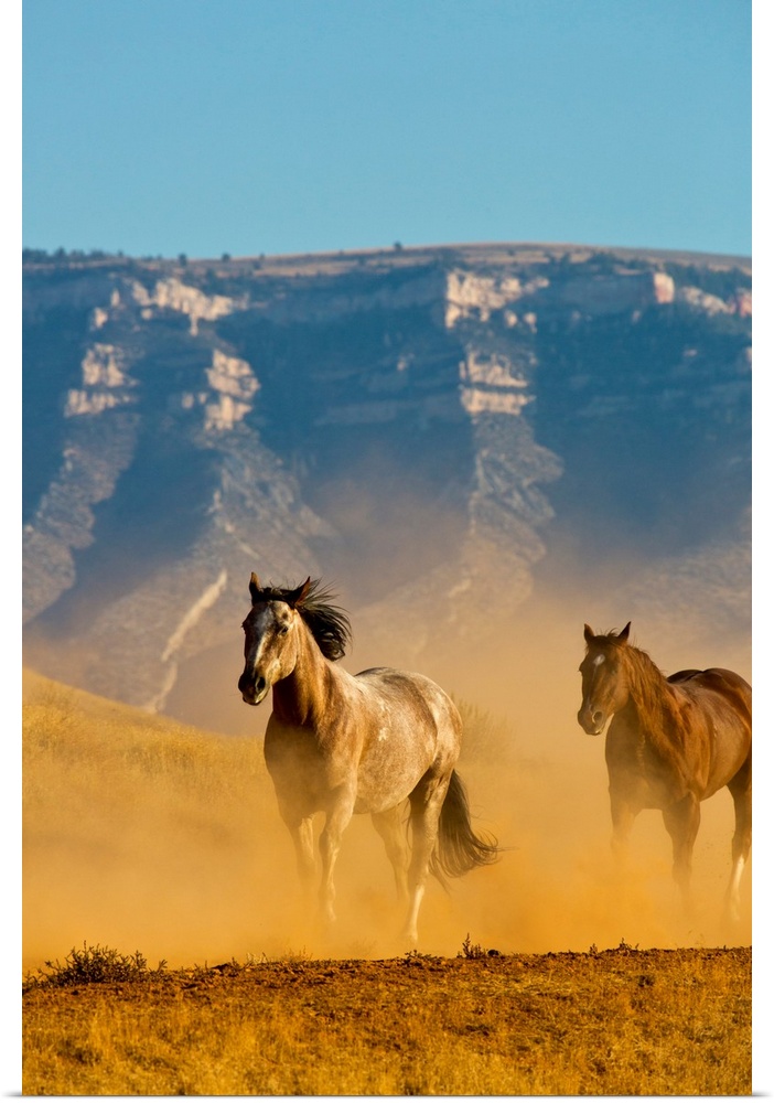 <p>North America, USA, Wyoming, Shell, Horses Running along the Red Rock hills of the Big Horn Mountains</p>