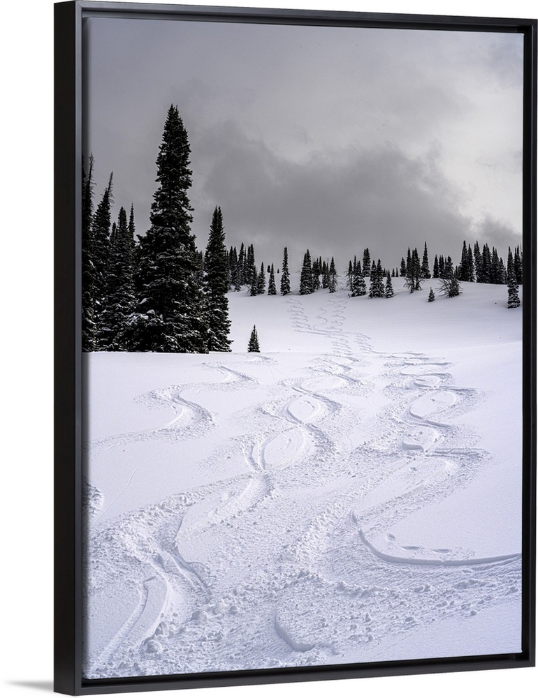 <p>USA, Wyoming. Ski tracks in powder near Jackson Hole.</p>