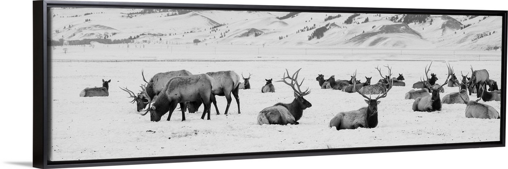 <p>USA, Wyoming, Tetons National Park, National Elk Refuge. Large elk herd in winter. United States, Wyoming.</p>