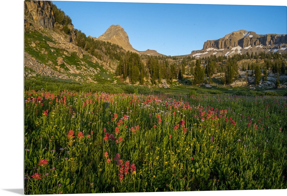 <p>USA, Wyoming. Wildflower meadow, Indian Paintbrush, Alaska Basin, Teton Mountains.</p>