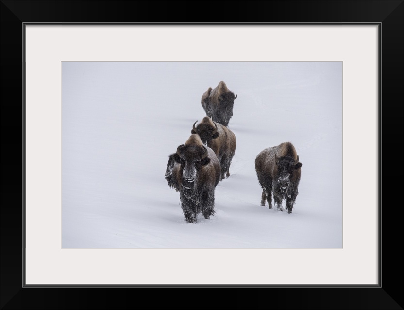 <p>USA, Wyoming, Yellowstone National Park. Bison herd in the snow. United States, Wyoming.</p>