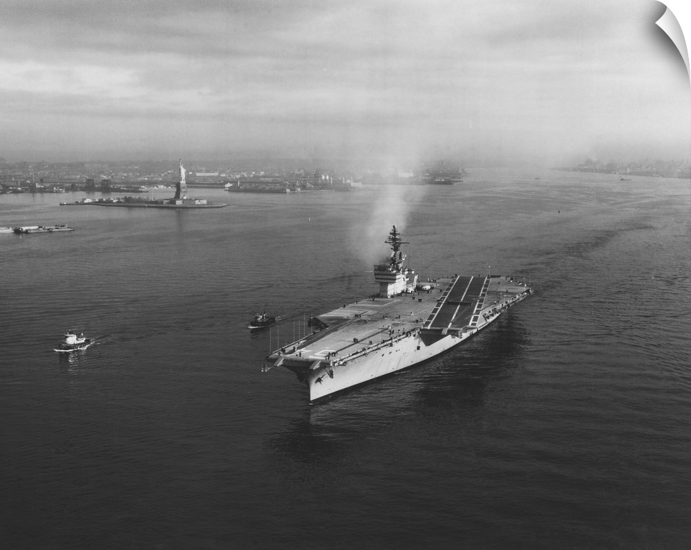 <p>November 4, 1961 - USS Constellation (CVA-64) leaving New York Harbor for builder's trials. The Statue of Liberty is in the left middle distance.</p>