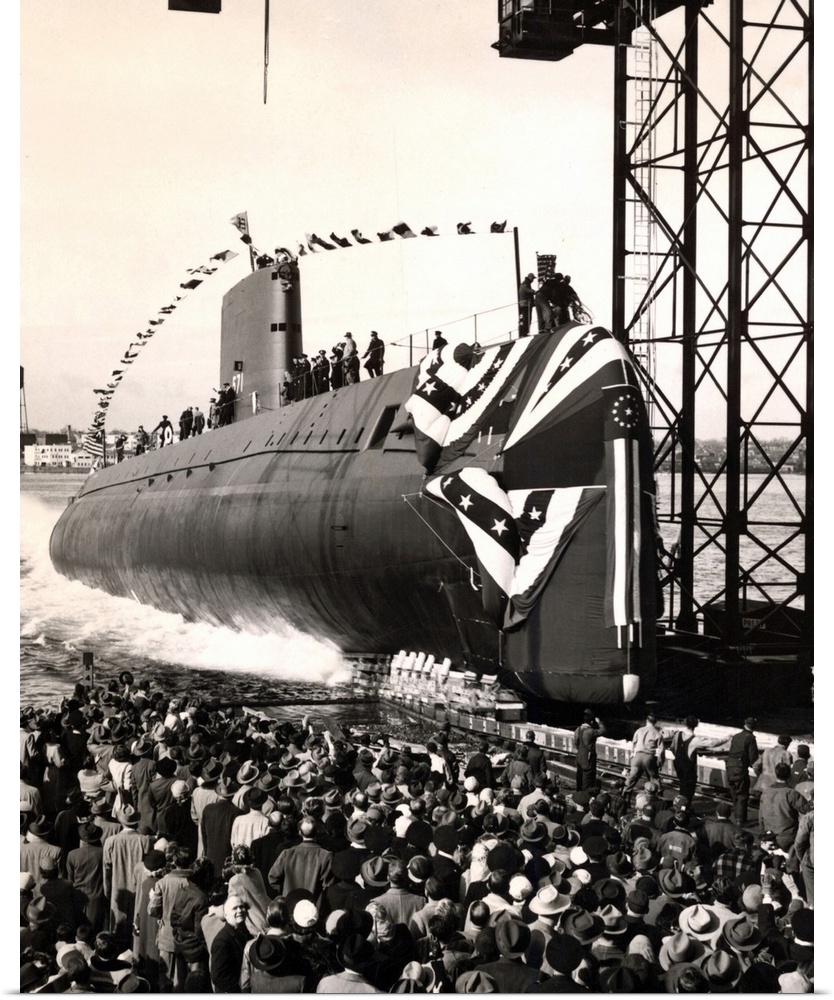 <p>January 21, 1954 - The nuclear-powered submarine USS Nautilus (SSN 571) slips into the Thames River.</p>