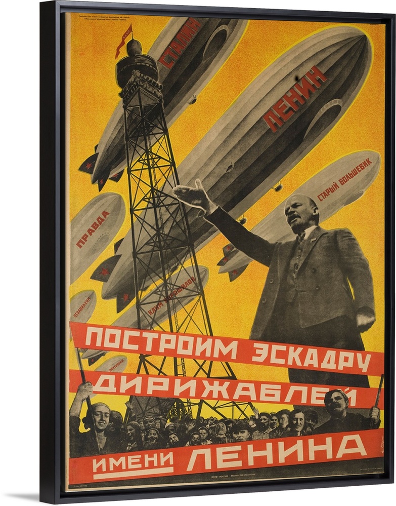 <p>ca 1931, designed by Georgij Kibardin. Possibly the most famous and important pre-WWII Communist Propaganda Poster. This poster was released in 1931 after the Airforce Ministry of Soviet Union (Osoaviahim) declared plans to build a fleet of 7 huge zeppelins.</p>