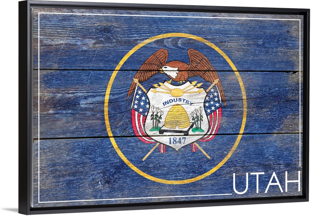 <p>The flag of Utah with a weathered wooden board effect.</p>