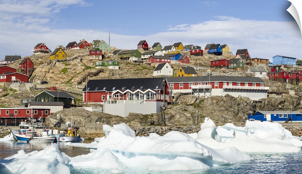 <p>Uummannaq harbor and town, northwest of Greenland, located on an island in the Uummannaq Fjord System.</p>