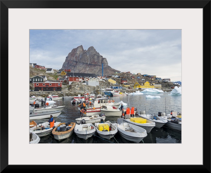 <p>Uummannaq harbor and town, northwest of Greenland, located on an island in the Uummannaq Fjord System.</p>