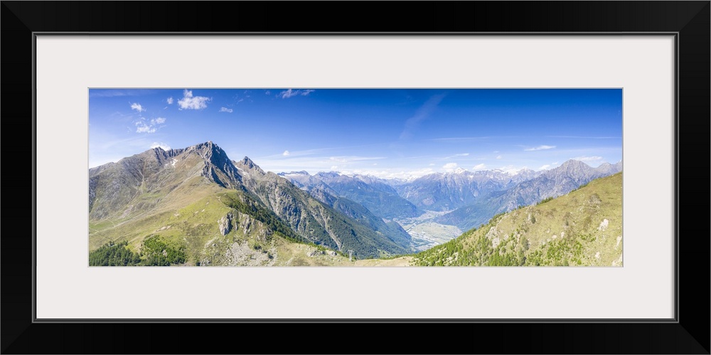 <p>Aerial panoramic of Valchiavenna seen from Monte Berlinghera, Sondrio province, Valtellina, Lombardy, Italy, Europe</p>
