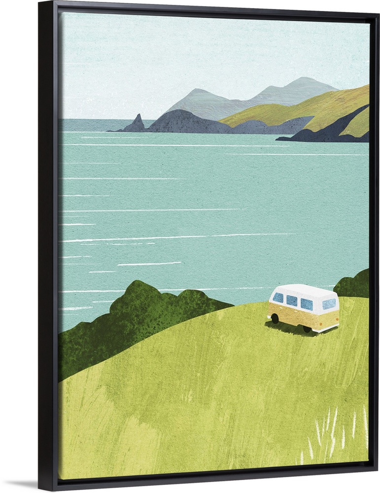 Art Bohemian Longwayhome Art Contemporary Art Rivers, Lakes, and Oceans Graphic Art Green Wall Art Landscapes Seascapes Transportation Caravan