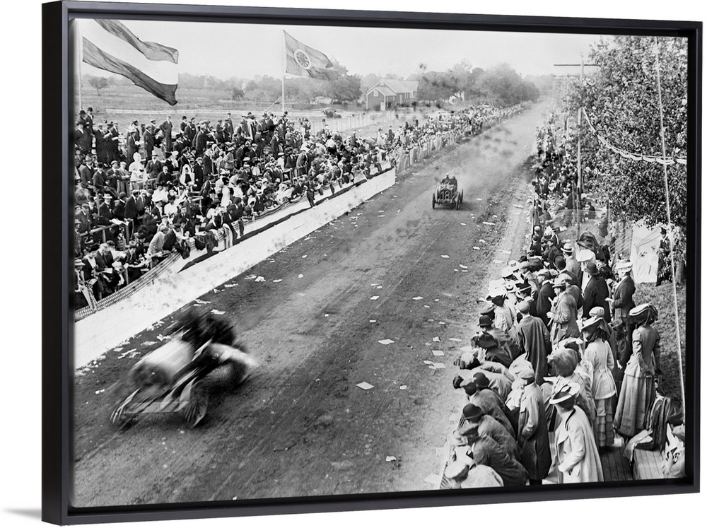 <p>Camille Jenatzy (front) and Arthur Duray, competing the Vanderbilt Cup race in Long Island, New York, 1906.</p>