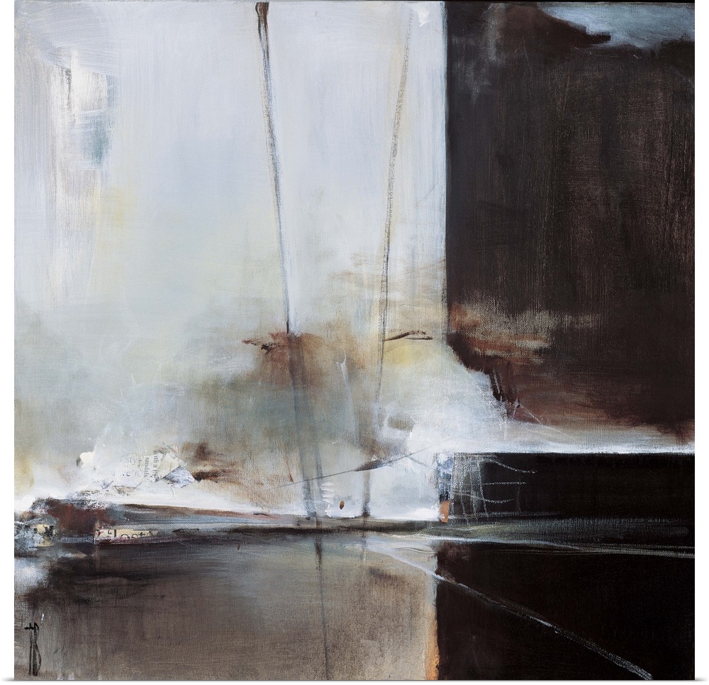 <p>Contemporary abstract painting using dark aggressive colors and light pale colors with jetting lines creating a feeling of movement.</p>