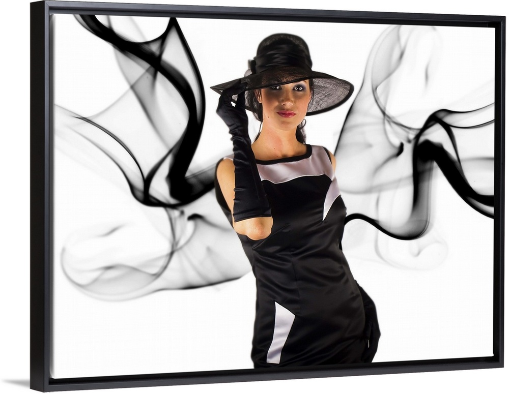 <p>Portrait of a woman dressed in black with dark smoke around her.</p>